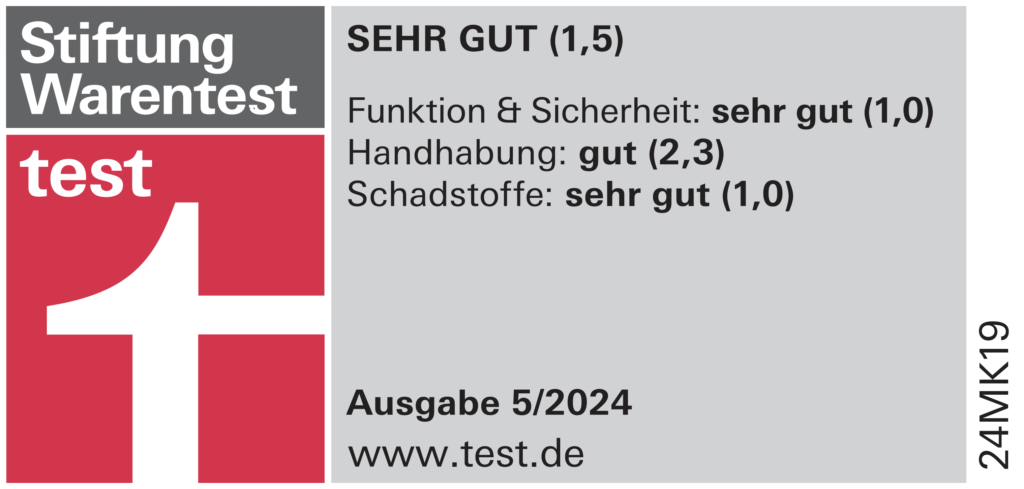 - Testsieger der Stiftung Warentest (Ausgabe 5/2024), Note SEHR GUT (1,5)